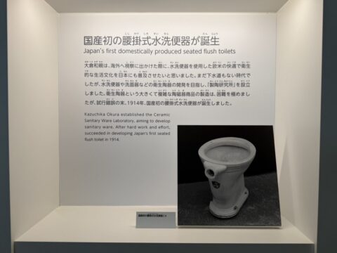 TOTOミュージアムには、日本初の洋風便器をはじめ、創業当時からのTOTOの歩みをたどる貴重な展示が並びます。