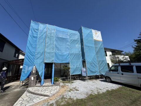 こちらは山口市大内長野の現場。晴天のもと外壁が美しく仕上がっています♪