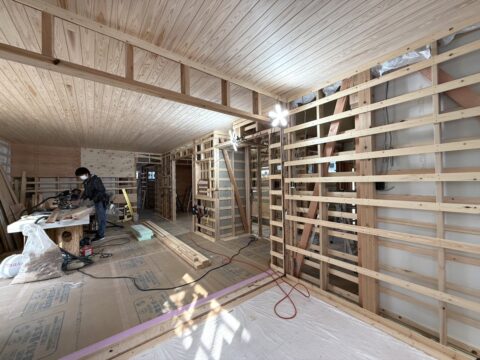 リノベーション工事が進む現場では、大工工事がいよいよ大詰めを迎えています。