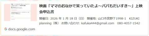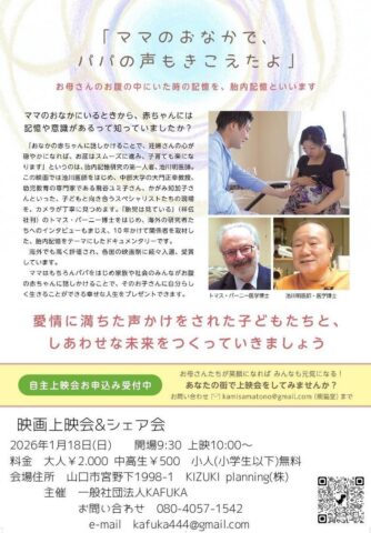 2026年1月18日(日)、KIZUKIplanningにてドキュメンタリー映画「ママのおなかで笑っていたよ〜パパもだいすき〜」の上映会が開催されます。