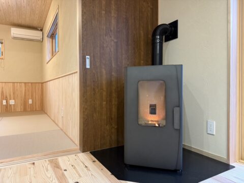 リノベーション工事に合わせて計画したペレットストーブの導入。