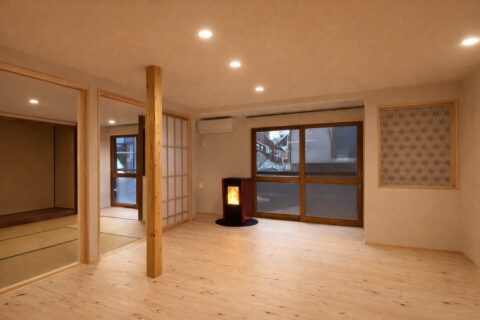 リノベーション工事で断熱性能が向上した住まい。ペレットストーブであたたかい冬をお過ごしください♪