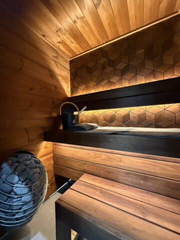 内装面では、六角形パネルや立体的な木製タイルなど、意匠性の高い素材提案が目立ち、単なる設備ではなく“住まいの一室として魅せるサウナ”という方向性がより明確になったような印象です。