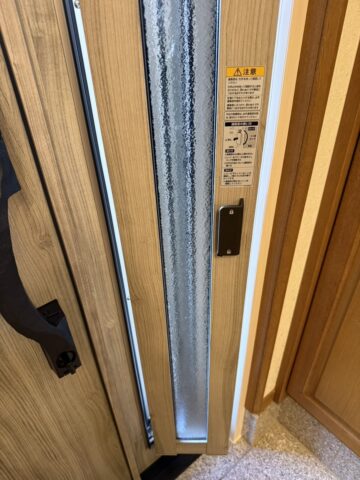 新しい玄関ドアは断熱タイプ。断熱性能の向上はもちろんのこと、防音効果も抜群です。またポケットkeyのご採用によりラクラク開錠&施錠。手に荷物を持っていても出入りをスムーズに行うことが可能となりました。デザインも素敵ですね!