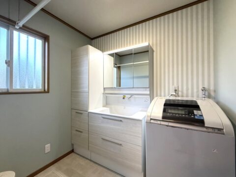 リフォームでは洗面化粧台を一新!使い勝手はもちろんのこと、これまでよりも収納力を向上させることができました!