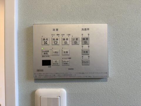 そして洗濯物の室内干し対策は「ホスクリーン」&「洗面室暖房機」を採用。必要な時に天井から物干し竿を吊るすことができ、脱衣室を暖房することで積極的に洗濯物を乾かすことができます。