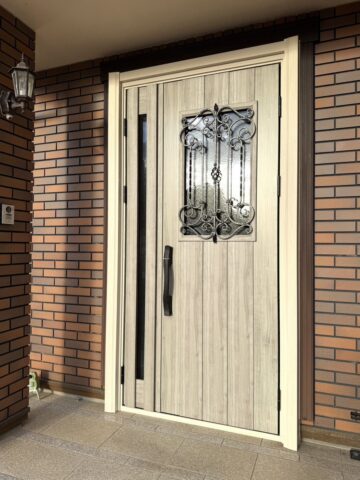 最後に「玄関ドア」のリフォームです。20年近く使用してきた玄関ドアは鍵の不調やドア表面塗装の傷みが目立つような状況に・・