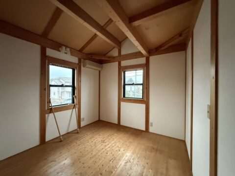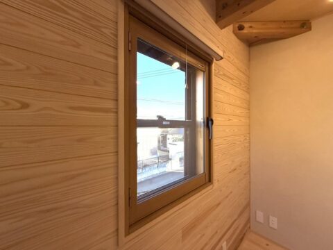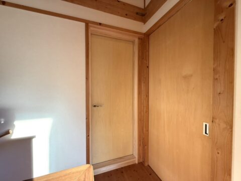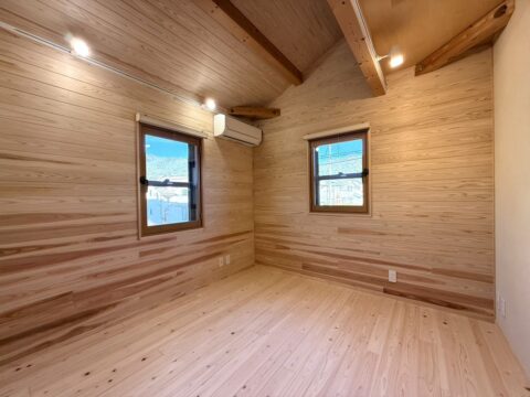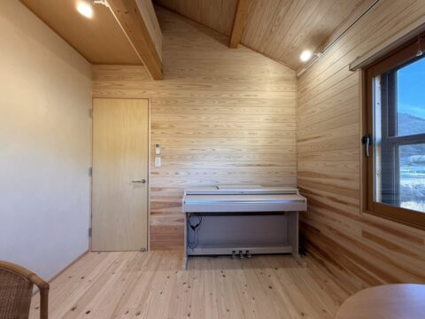 天然木の心安らぐ香りが漂く防音室。お施主様にもお喜びいただくことができました。これからアップライトピアノもこの部屋に搬入される予定です。