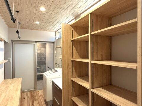 そこで隣接する広い納戸に着目し、その一部を取り込むことで、洗う・干す・たたむが1階で完結するランドリールームを計画。家事の流れそのものを見直すことで、暮らしに余白を生み出しました。