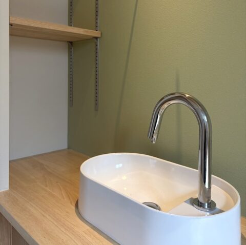 「狭い・暗い・寒い」といった既存の課題に対し、納戸の一部を取り込むことで空間にゆとりを確保。収納付きカウンターや自動水栓を取り入れることで、快適性と衛生性を高めるとともに、小窓には内窓を設置し断熱性能も向上させています。